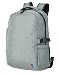 100% polyester; 18" x 12" x 6"; large main compartment; size zippered padded laptop compartment; embroidered c logo; silicone wrapped puller; external water bottle pocket; carry handle; contoured straps; padded back;